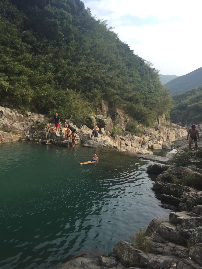 Prendete il bus per Sai Kung e una volta arrivati vi aspetta una camminata di un’ora circa in mezzo alla natura prima di arrivare al villaggio e alla spiaggia di Tai Long Sai Wan, dove potrete trovare diverse persone che fanno surf. E’ una spiaggia privata, ma si può sostare fino a 50 min. Da qui proseguite e vi troverete di fronte a rocce abbastanza alte da scalare. Non è semplice per niente arrivare in cima, ma una volta arrivati avrete di fronte a voi una piscina naturale alimentata da cascate. Fatevi un bel bagno rinfrescante e se avete il coraggio…buttatevi dalla scogliera alta 10 metri che finisce direttamente nella piscina naturale. Passata la paura è davvero divertente e una bella botta di adrenalina, ma forse farlo una volta è sufficiente! 🙂 (qui sotto il video del mio tuffo!!!)