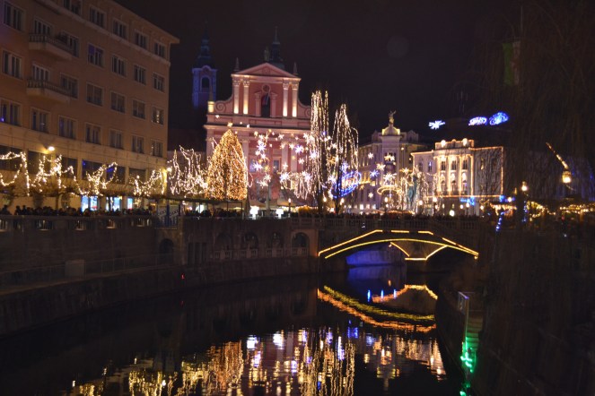 Lubiana (Ljubljana) è la capitale della Slovenia e mi ha davvero stupita! E’ a misura d’uomo, infatti tutto è raggiungibile a piedi o in bicicletta ma è comunque abbastanza grande per essere interessante. I palazzi art nouveau nel centro della città vecchia, quelli lungo il fiume ed il famoso castello la rendono una città piacevole e armoniosa. I diversi locali lungo il fiume propongono piatti sloveni e bevande calde in inverno. Se anche tu andrai a Lubiana nel periodo di capodanno, o comunque in inverno, le temperature si abbassano parecchio, ti consiglio di vestirti a strati e indossa una bella maglia termica e guanti e sciarpa per riuscire a stare fuori tutto il giorno senza congelare! Se poi avrai bisogno di scaldarti ulteriormente, ci sono banchetti di Vin Brûlé sparsi qua e là per la città. Nel periodo natalizio la città è piena di luci, alberi di Natale, decorazioni e fanno spesso concerti di musica dal vivo. Il clima di festa che si respira è molto bello! Per la sera di Capodanno noi siamo stati in un ristorante in centro di cucina tipica slovena con menù fisso. Abbiamo prenotato dall’Italia e ti consiglio di fare lo stesso o rischi davvero di passare tutta la serata al freddo in quanto i ristoranti sono molto affollati quella sera. Dopo la cena siamo andati nella piazza principale della città e abbiamo guardato lo spettacolo dei fuochi d’artificio che fanno proprio sopra al castello.