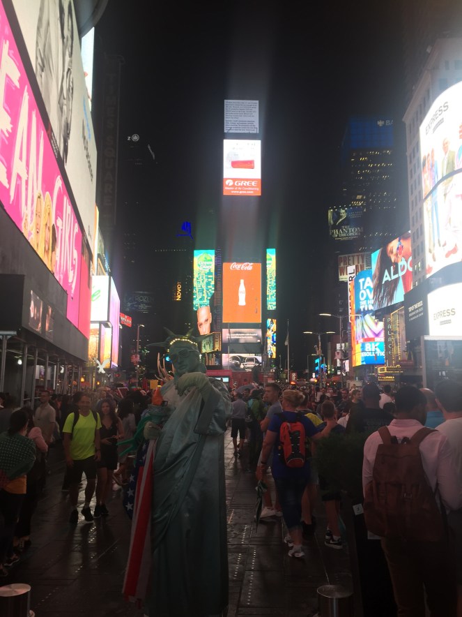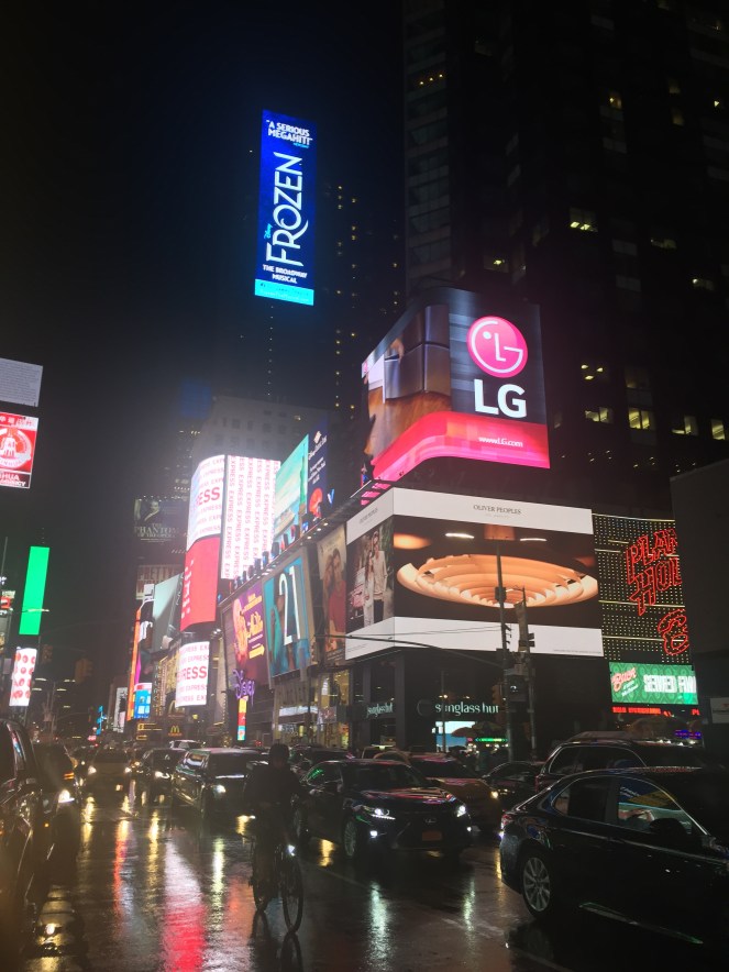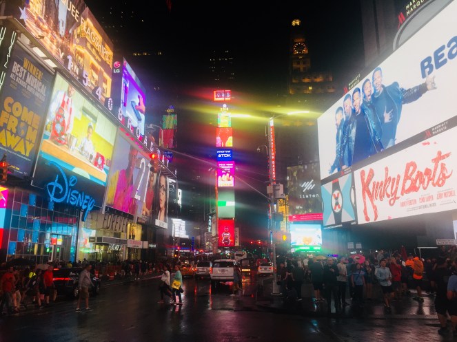 - Times Square, è l’incrocio tra Broadway e Seventh Ave, è il cuore pulsante di NY. Ad attendervi una cascata di luci, mega schermi, led, tabelloni giganteschi di Broadway, taxi gialli che sfrecciano, 24h su 24.